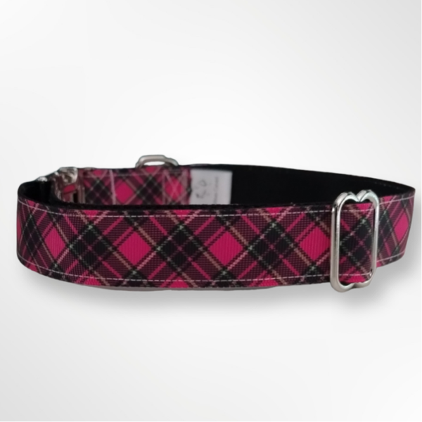 Flat Collar -Pink Black Tartan- 2.5 cm wide