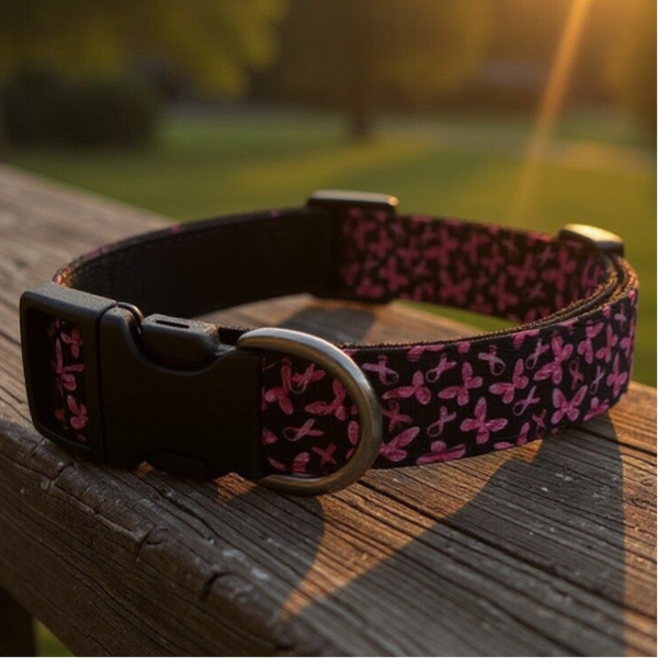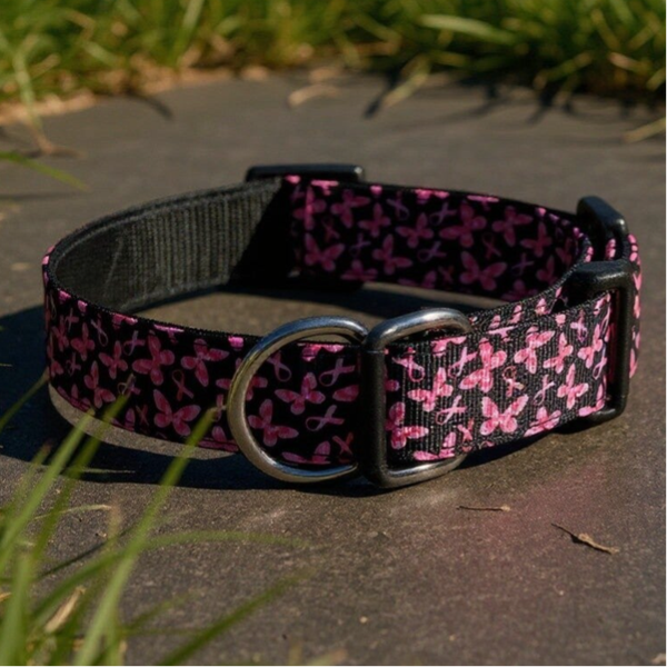 Flat Collar -Pink Ribbon Butterfly- 2.5 cm wide