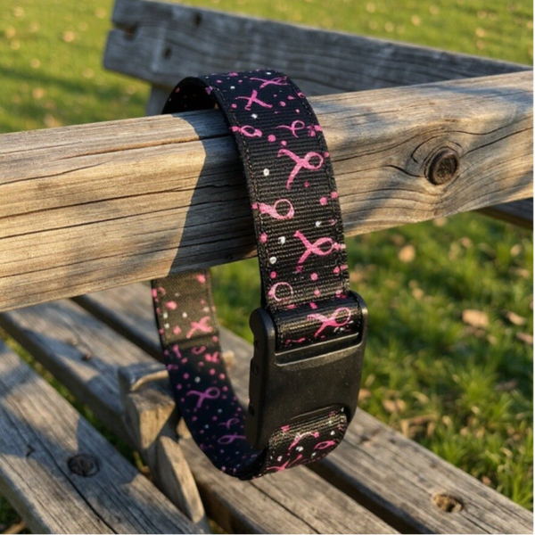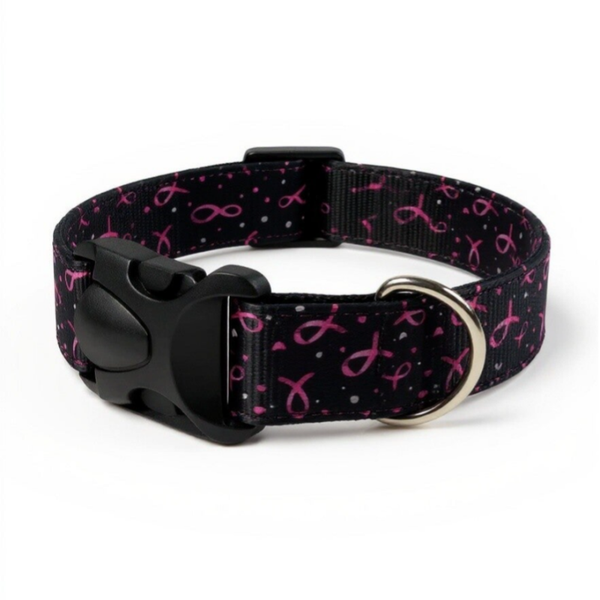 Flat Collar -Pink Ribbon - 2.5 cm wide