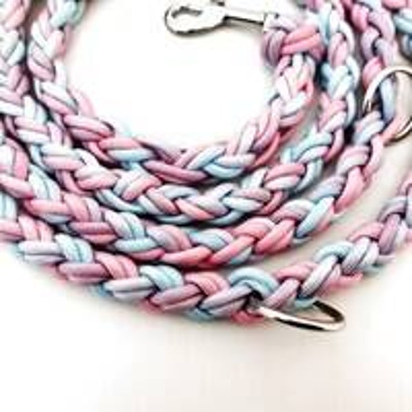 This 550 Paracord Lead is made out of pastel blues and pink cord.