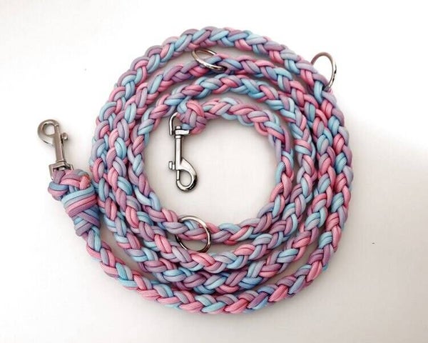 Paracord Lead - Pastel Blue, Pink - 210 cm Length