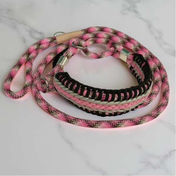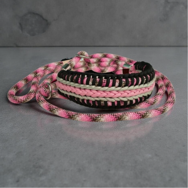 Slip Lead with Integrated Adjustable Collar - Black Pink